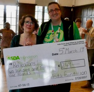 The very wonderful Caroline came from Asda to give us a cheque for our Christmas party (it’s only nine months away, are you ready?).