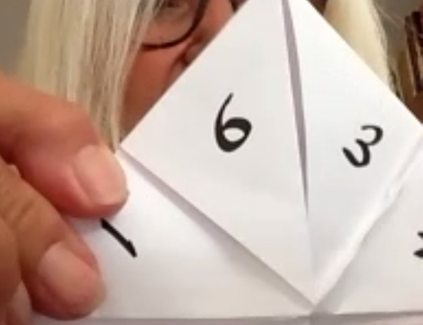 Brooke told us this was called a ‘chatterbox’. I looked up how-to-make-one on Wikipedia and found out it is also called a ‘fortune teller’, ‘salt cellar’,‘ whirlybird’, or ‘paku-paku’.