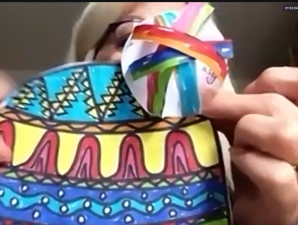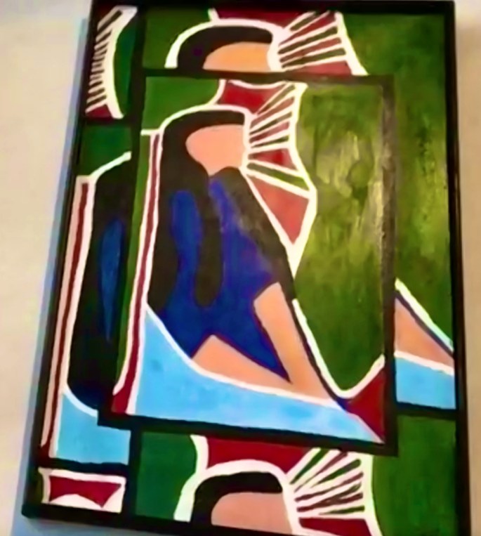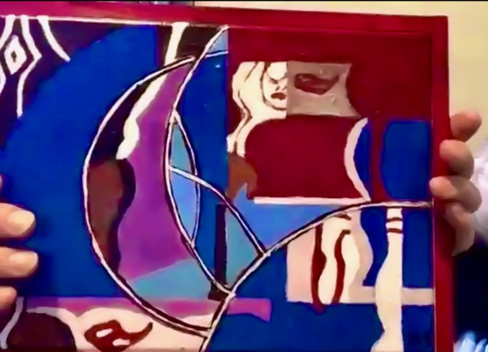 David has been using off-cuts from Gyda’s craft sessions to produce collages – then using them as a basis for paintings. A example is above on the right. We look forward to an art show from David when we eventually return to Shrewsbury House.