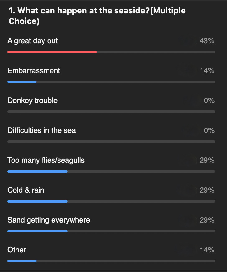 I was rather sad that ‘The sea‘ and ‘Donkeys‘ weren’t more popular.