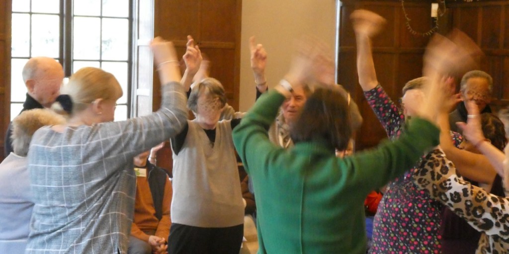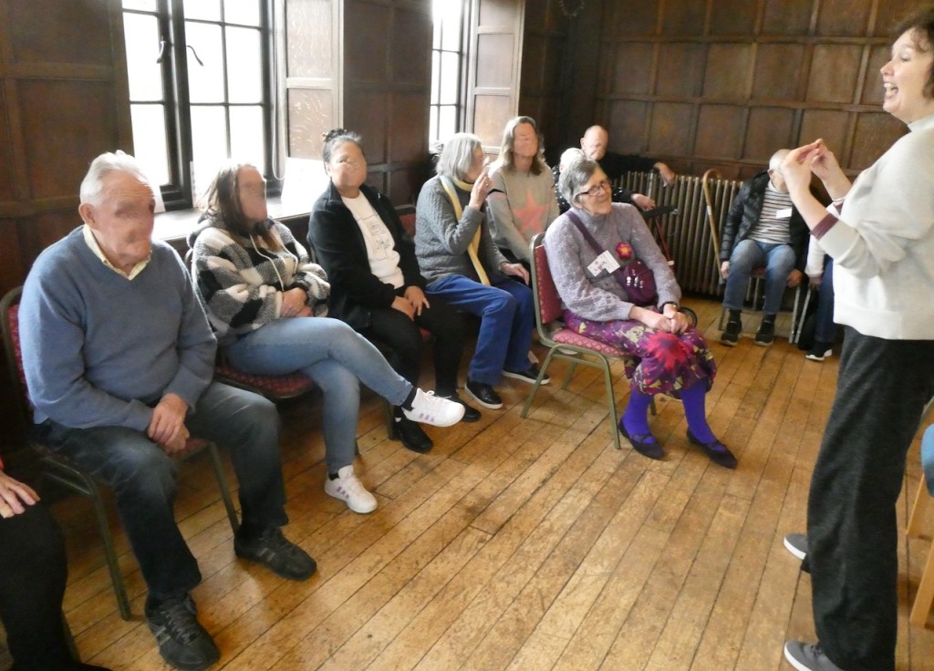 Today’s workshop focused on leg strength, in particular movement patterns to build strength getting out of chairs. Adaptions were given to suit individual abilities. Julie can be seen here explaining to the group what they will be doing.