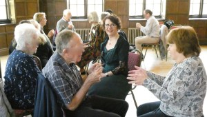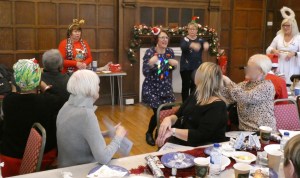 The music quiz was slightly less enjoyable than I would have liked, as the music machine did not work!!! Luckily, the wonderful Pearl stepped-in with more of her memorable jokes. Then the performance team – Caroline, Janet and Pearl – took to the floor for an interactive trio of songs. Who knew “Ten green bottles” would take soooo long to sing.