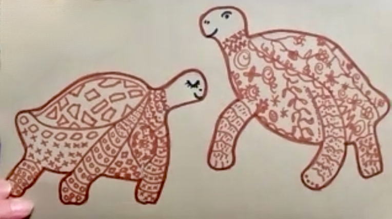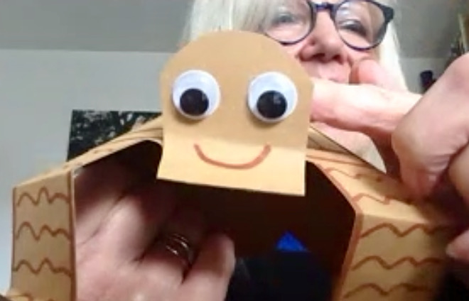Gyda had a tricky craft – making a paper tortoise (based on Lynne’s pet). She also suggested drawing, and colouring-in a tortoise.